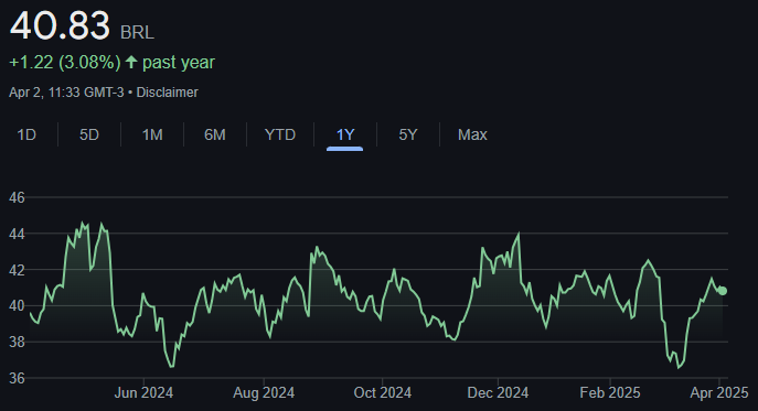 No momento em que este artigo é escrito, as ações ordinárias PETR3 estão sendo vendidas por R$ 40,83 cada. Nos últimos 12 meses, elas chegaram à máxima de R$ 42,66, e à mínima de R$ 31,56: