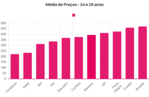 De acordo com o site HelloSafe, o valor médio para planos de saúde para quem está entre 24-28 anos, muitas vezes a idade na qual você começa a pensar nisso, é essa: