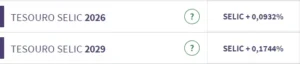 No momento, o Tesouro SELIC 2026 está rendendo a SELIC + 0,0932%, enquanto o Tesouro SELIC 2029 está rendendo a SELIC + 0,1744%. A SELIC hoje é de 13,75%.